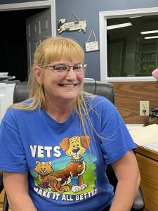 My name is Ginna Morris, I have worked on and off here at Sullivan Vet Clinic for going on 8 years. I love working here because I love working around animals. My bosses are excellent to work for and my co-workers are also wonderful to work with because they love animals as much as I do. I have a son named Dylan who is going to flight school to be an Ag Pilot, He also shares my love for animals.